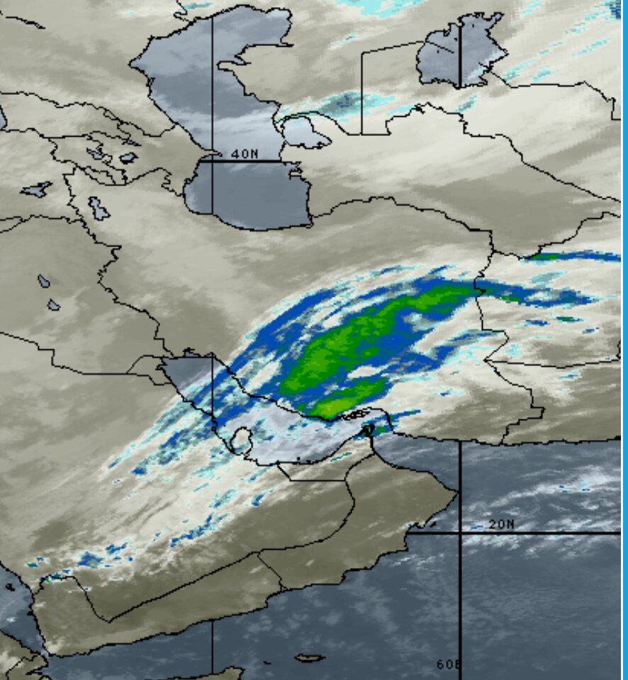طبق تصاویر هواشناسی احتمال بارش باران در جنوب شرقی کشور زیاد است