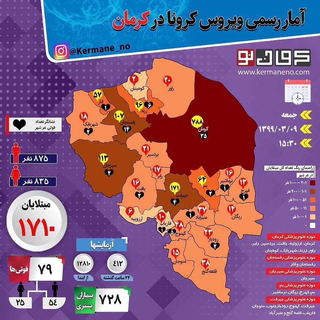 آمار رسمی کرونا در جنوب کرمان و 9/2/99